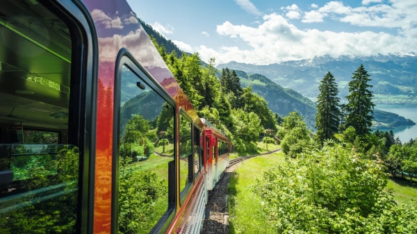 세계 최초의 톱니바퀴 열차(리기반) 탑승하여 리기산 정상으로 이동 (약 30분 소요)